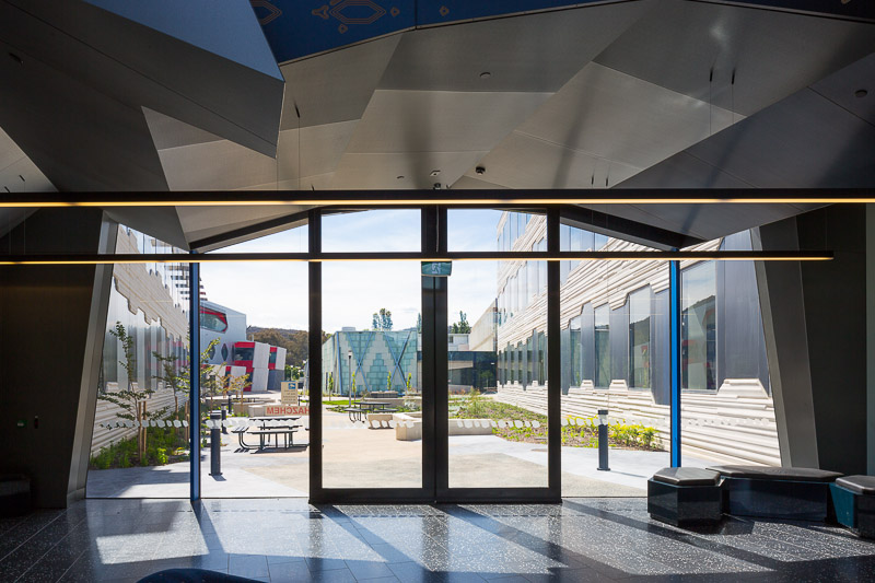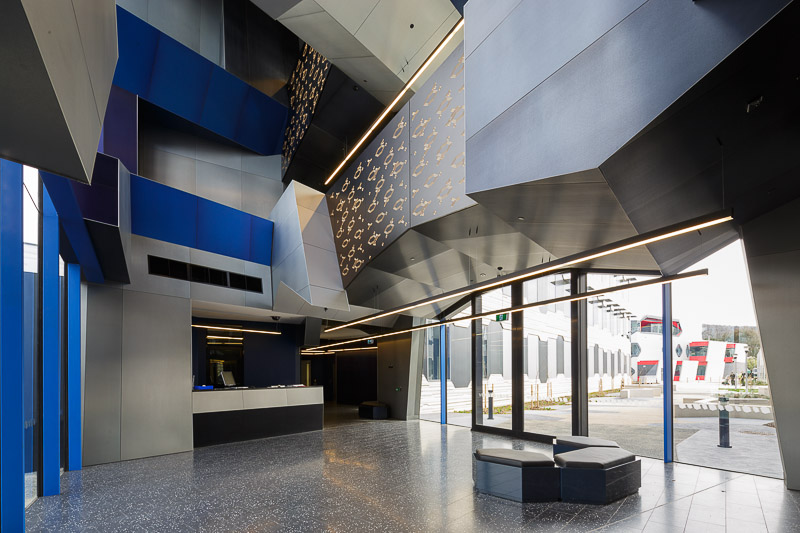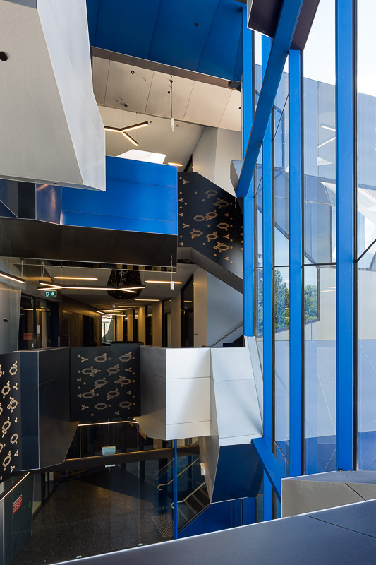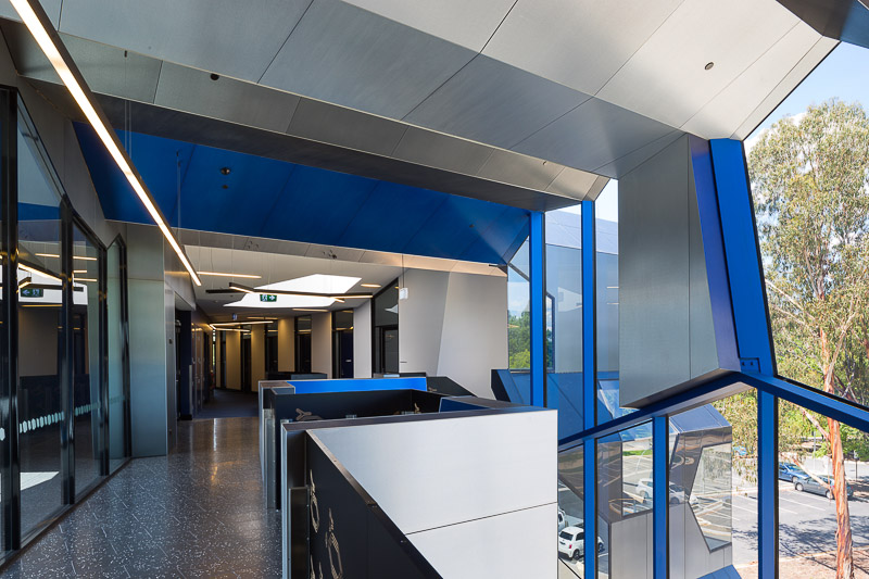 Other main features of this building are the different angled windows both internally and externally, aluminium panels in different colours make up the sawtooth angled ceilings and are of exceptional quality. The level of skill that was shown to produce such a product is remarkable.